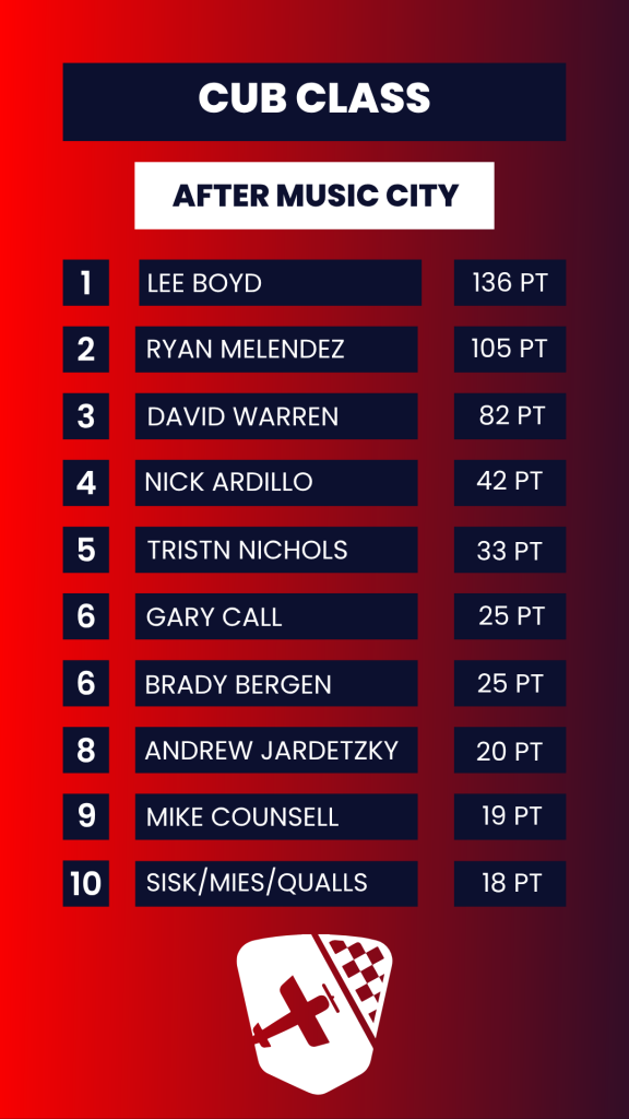 At the end of the season, an annual champion will be named in each competition class. The annual champion is determined by the number of points accumulated throughout the year. Please note: 80% (in 2025, 8) of the regular season events will count towards annual points. If you participate in more than 8 regular season events, your top 8 finishes will be counted. Lonestar STOL (Friday) is considered a regular season event. The National Finals for pilots who qualify will be held Saturday of the same weekend and count as separate and DOUBLE points. You do not have to be present at the final event weekend to win; however, points earned at this event will be added to the existing standings.